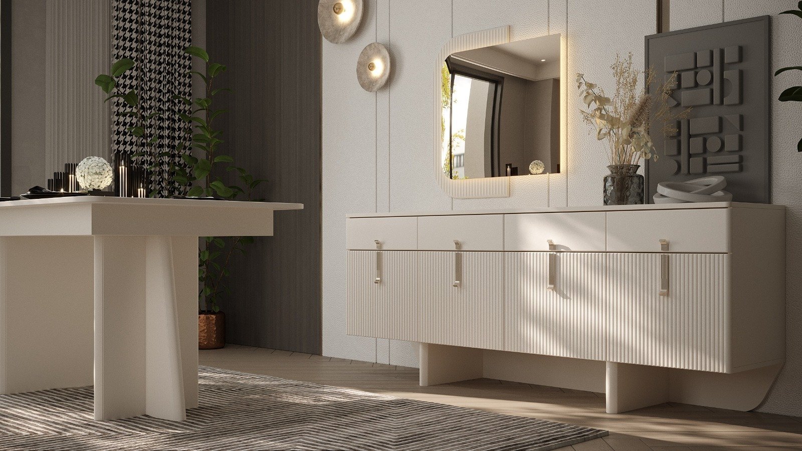 Ürün içeriği; 4 sandalye + yemek masası + konsol ve aynası şeklindedir.