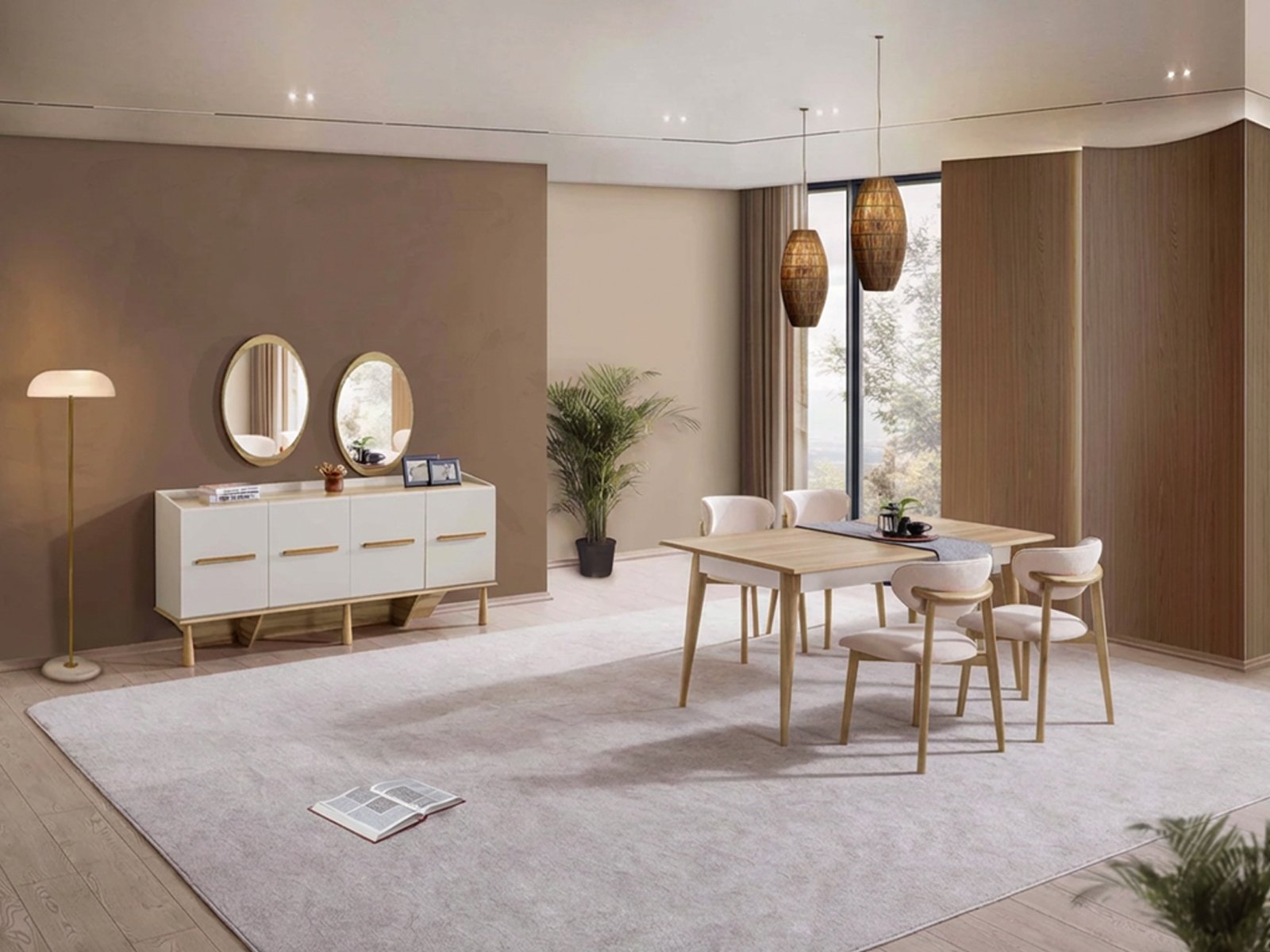 Konsol+Ayna+Yemek masası+4 Sandalye