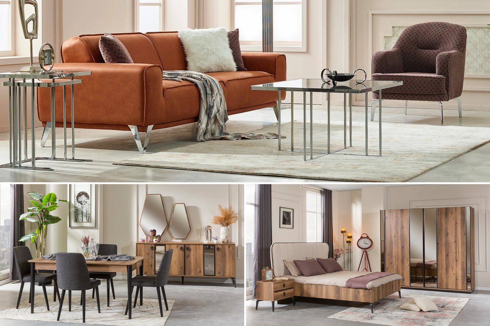 Yatak odası:Gardrop,2 komodin,Başlıkl karyola,Şifoniyer + ayna