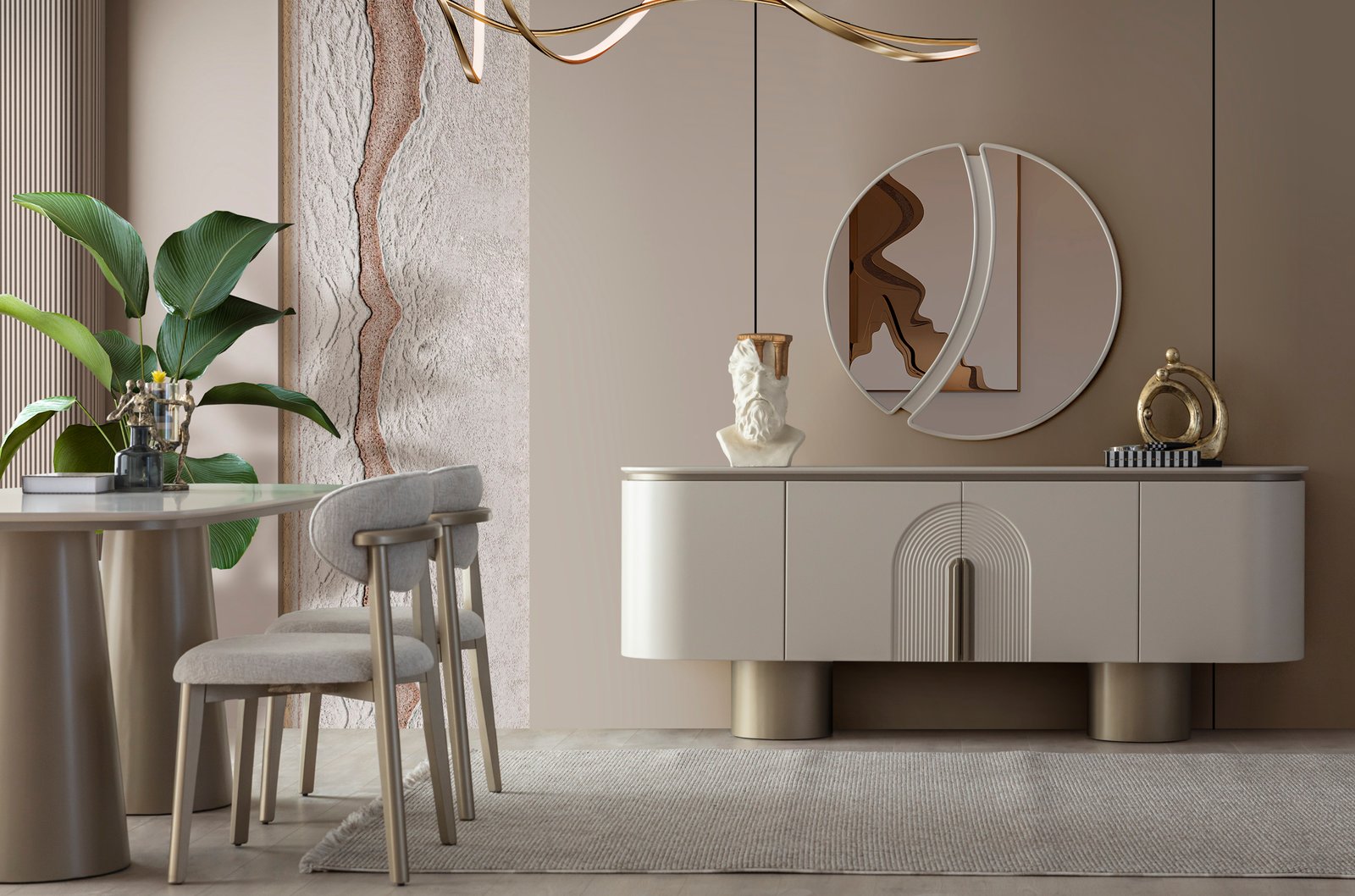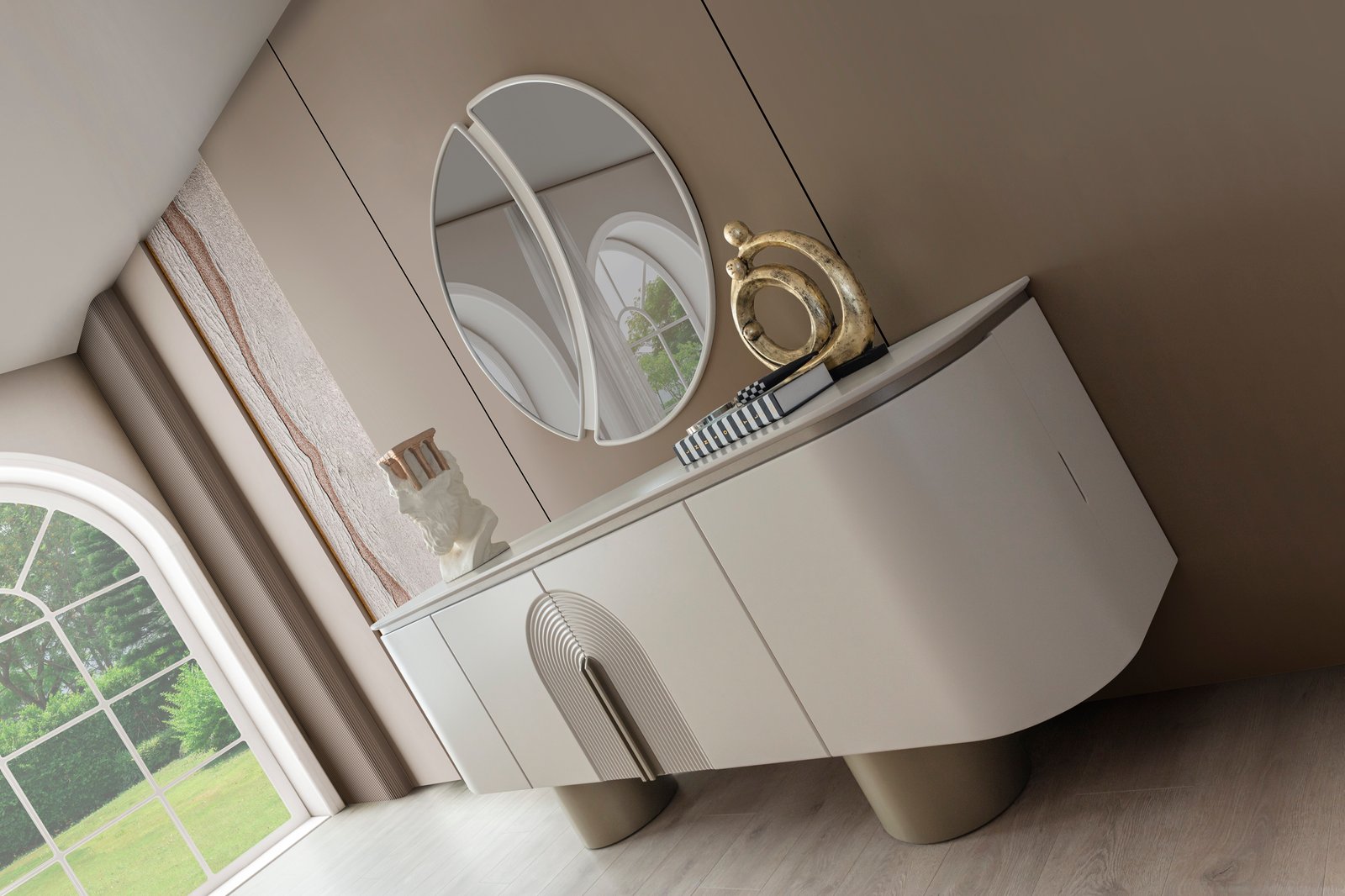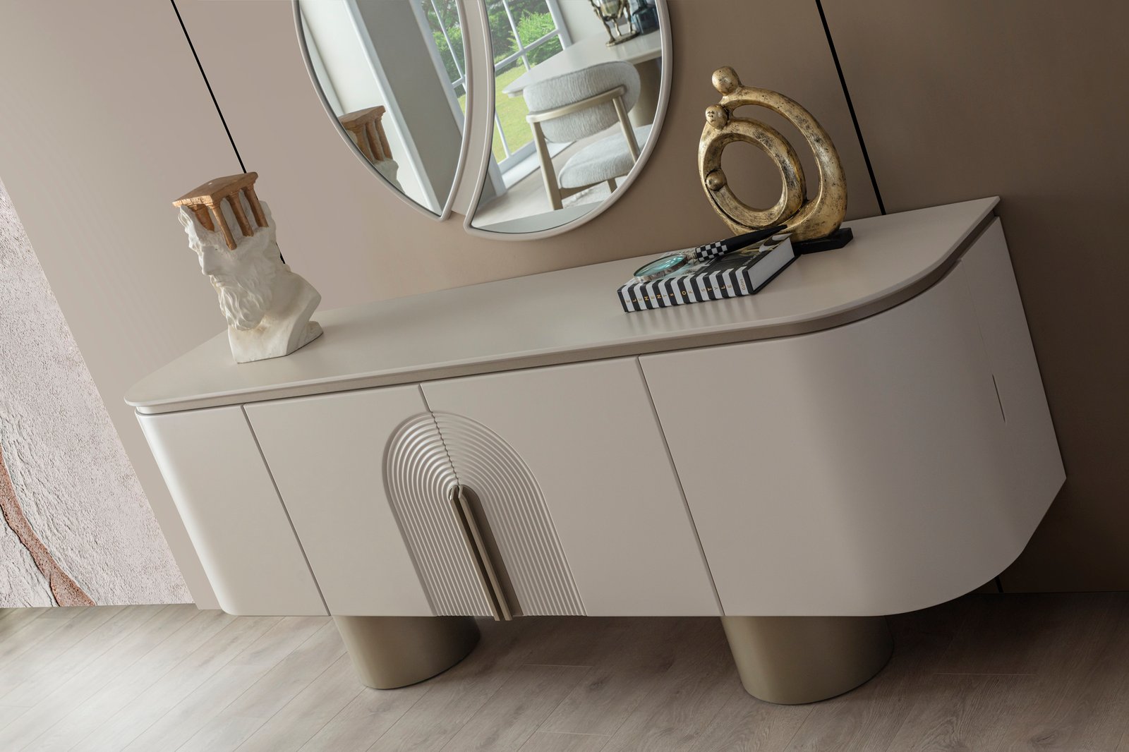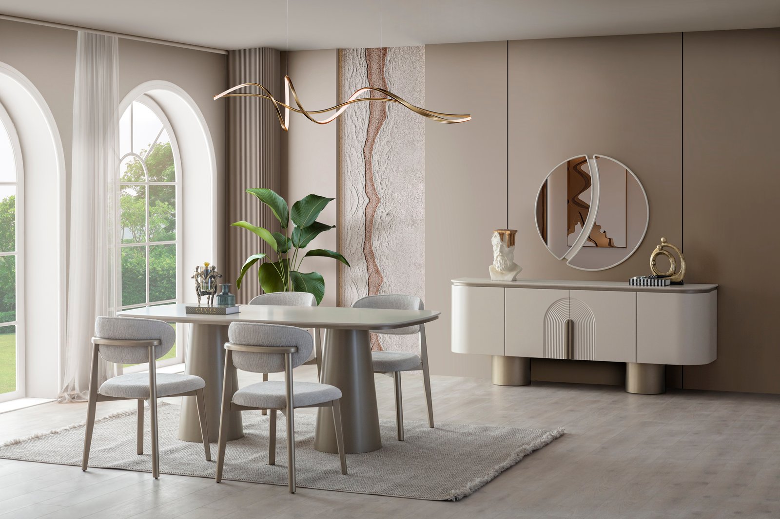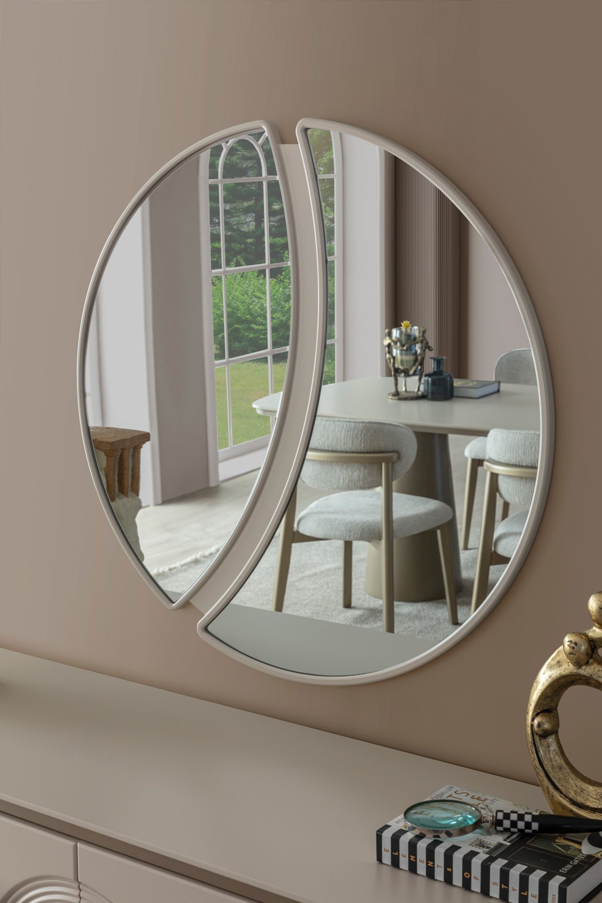 Ürün içeriği; 4 sandalye + yemek masası + konsol ve aynası şeklindedir.